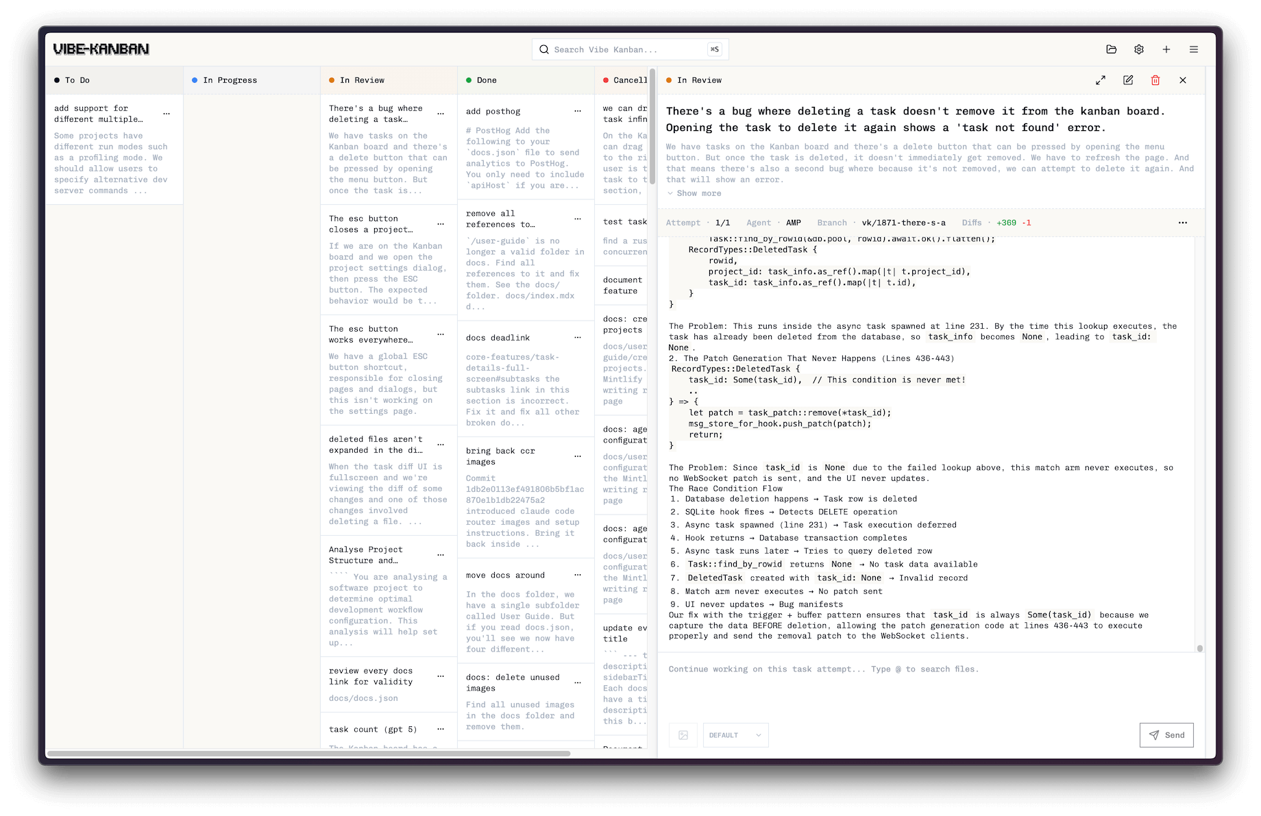 The project name perfectly fits the current Vibe Coding trend. Simply put, it's a kanban...